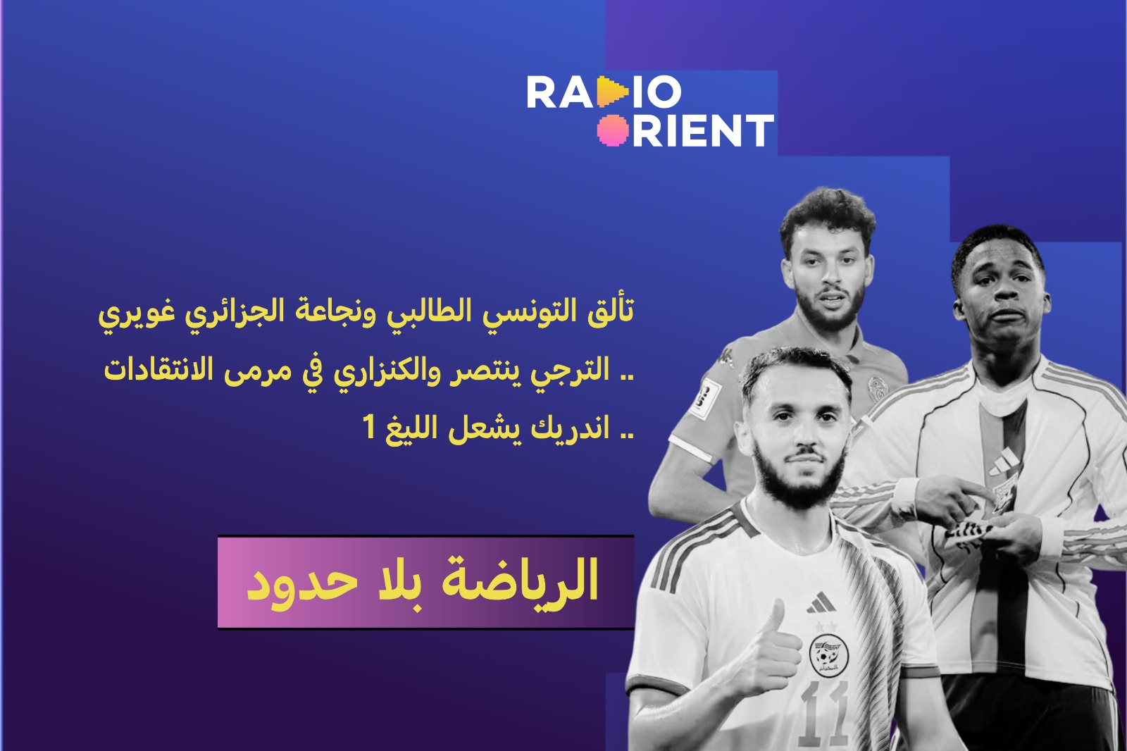الرياضة بلا حدود تألق التونسي الطالبي ونجاعة الجزائري غويري .. الترجي ينتصر والكنزاري في مرمى الانتقادات .. اندريك يشعل الليغ 1 وضحايا في هجوم مسلح على ملعب في المكسيك