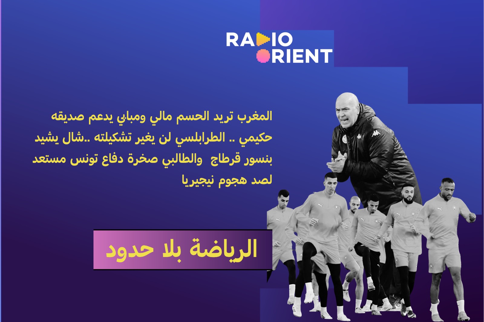 الرياضة بلا حدود: المغرب تريد الحسم مالي ومبابي يدعم صديقه حكيمي .. الطرابلسي لن يغير تشكيلته ..شال يشيد بنسور قرطاج والطالبي صخرة دفاع تونس مستعد لصد هجوم نيجيريا