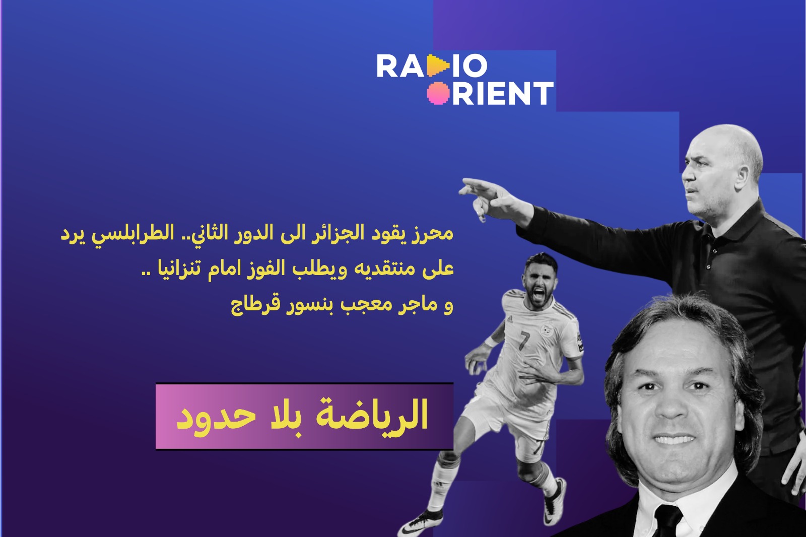 الرياضة بلا حدود : محرز يقود الجزائر الى الدور الثاني.. الطرابلسي يرد على منتقديه ويطلب الفوز امام تنزانيا .. و ماجر معجب بنسور قرطاج